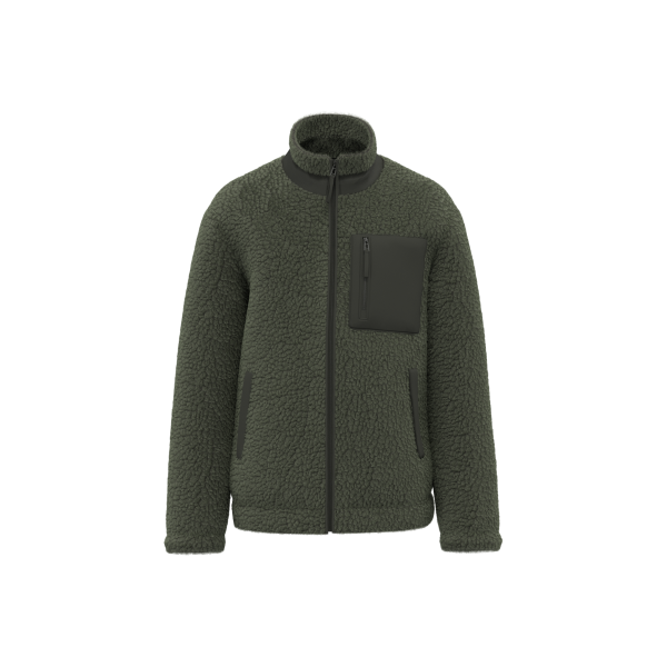 100% post-consumer gerecycled polyester. Dubbelzijdige sherpastof met ton-sur-ton fleece aan de binnenkant. Borstzak aan de hartzijde en paspelzak in contrasterende ripstop-stof bij de kleuren Wet Sand/Driftwood en Forest Khaki/Dark Forest Khaki, ton sur ton bij Black. Inzetstuk in de kraag en nektape. Contrasterende rits bij Wet Sand/Driftwood en Forest Khaki/Dark Forest Khaki, ton sur ton bij Black. Rits van gerecycled plastic in het midden vooraan en aan de borstzak, met trekker in de hoofdstof en een metalen schuiver. Afwerkingspasje aan de binnenkant in het midden vooraan. Mouwuiteinden en onderkant met onzichtbare elastiek. Binnenkant kraag in sherpastof en ophanglus in het midden op de rug.